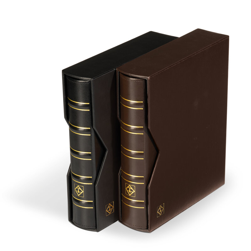 Raccoglitore ad anelli di alta qualità in vera pelle (design classico) per riporre monete, francobolli, banconote, cartoline e molto altro ancora Capacità: fino a 60 custodie OPTIMA o 15 portamonete OPTIMA. Meccanismo ad anello 4D stabile. Inclusa custodia protettiva abbinata (pelle artificiale). Raccoglitori senza copertine. Formato esterno: 255 x 290 x 70 mm.